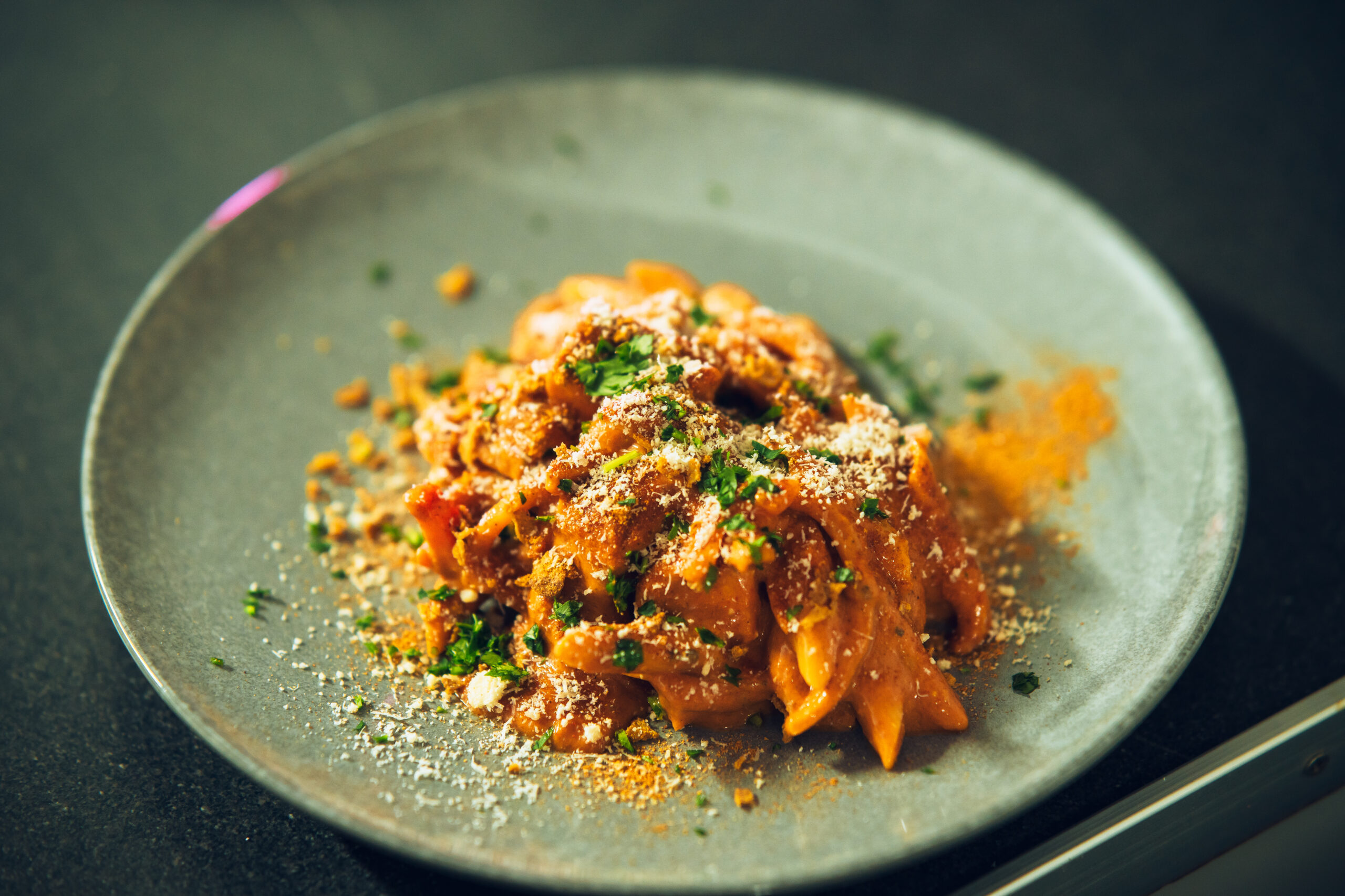 Pasta topped with fresh spiced chicken coated in our classic arrabiata sauce infused with chillies, basil, and garlic. Topped with chillies & parmesan